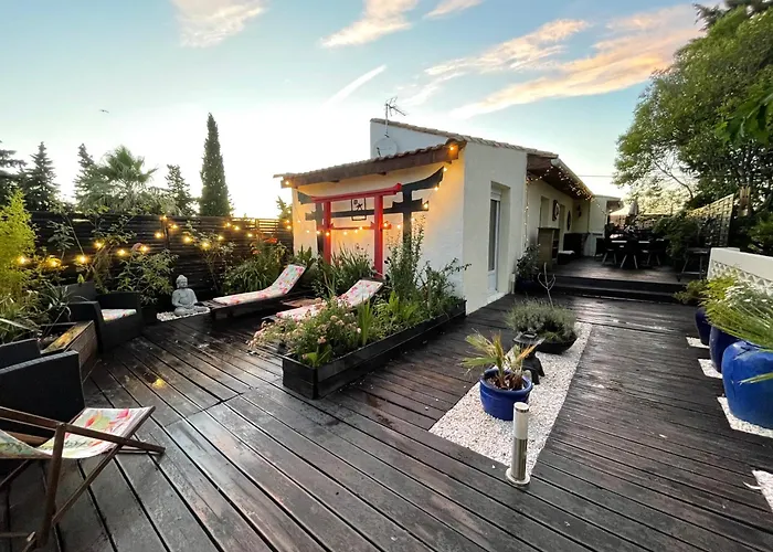 Cote Jardin Est Un Spacieux Et Lumineux T3, Entierement Renove, A 2 Pas De L'Herault Et A 10Min Du Bord De Mer Proche Du Centre Historique Et Du Fabuleux Chateau Laurens, Vous Apprecierez Le Calme De Sa Belle Terrasse Et La Vue Superbe Sur Le Jardin